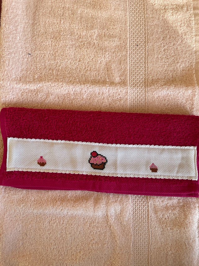 Serviette invités brodée à la main au point de croix. Tissu éponge.